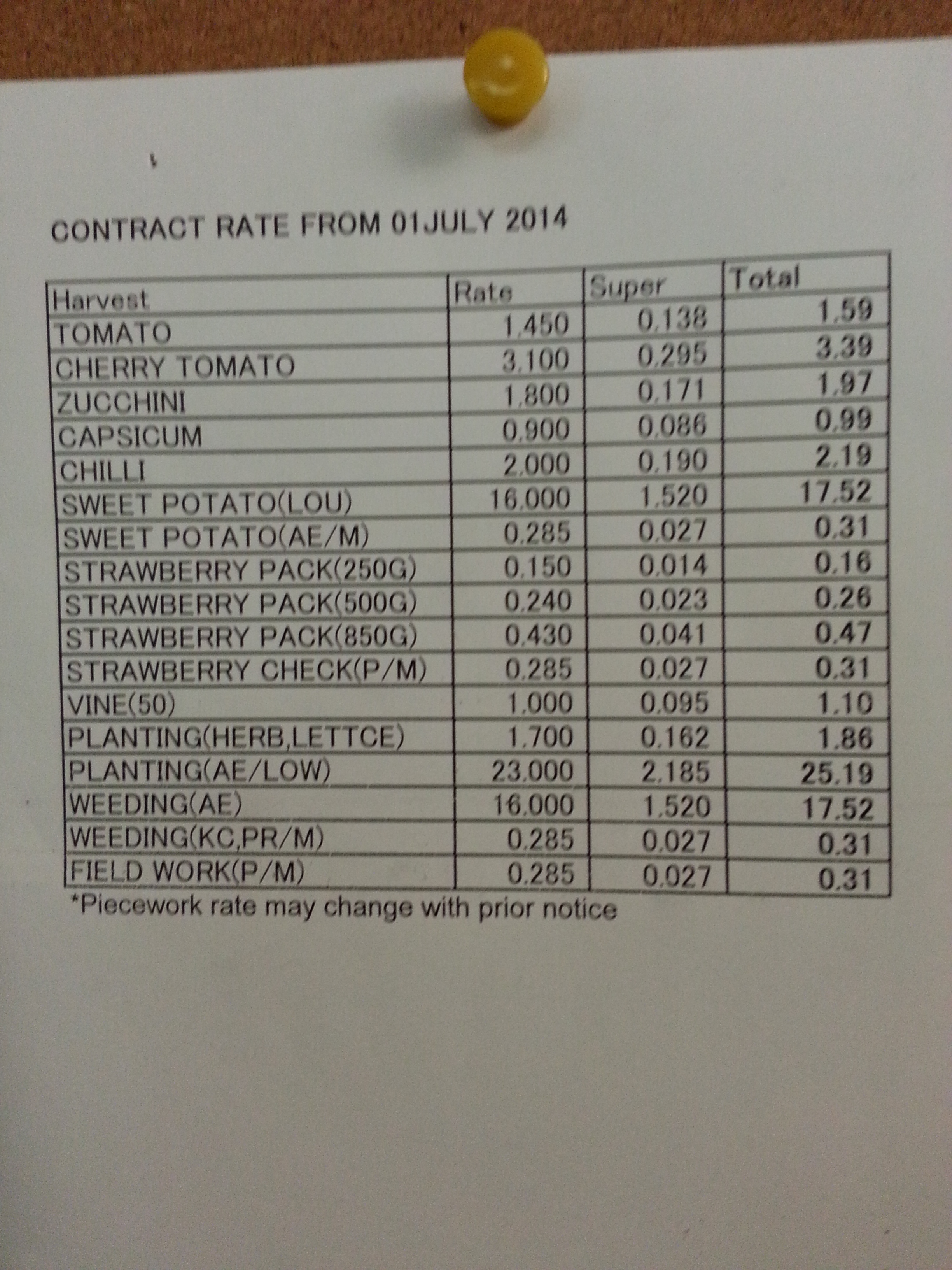 Some simple calculation and you’ll know, after paying for rent and food, not much was left. Not to say, picking 38 buckets in 10 hours was crazy. I was pretty sure I was not going to pick as fast after that day, because I’ve got really bad pain on my back and knees after bending and kneeling and carrying heavy buckets. Other girls picked much slower than me and I always asked them how the hell they’re still staying there while what they earned could only barely cover the rent. But most of them stayed there for at least 3 months so that they could get the 88 days signed off for applying the 2nd year visa.